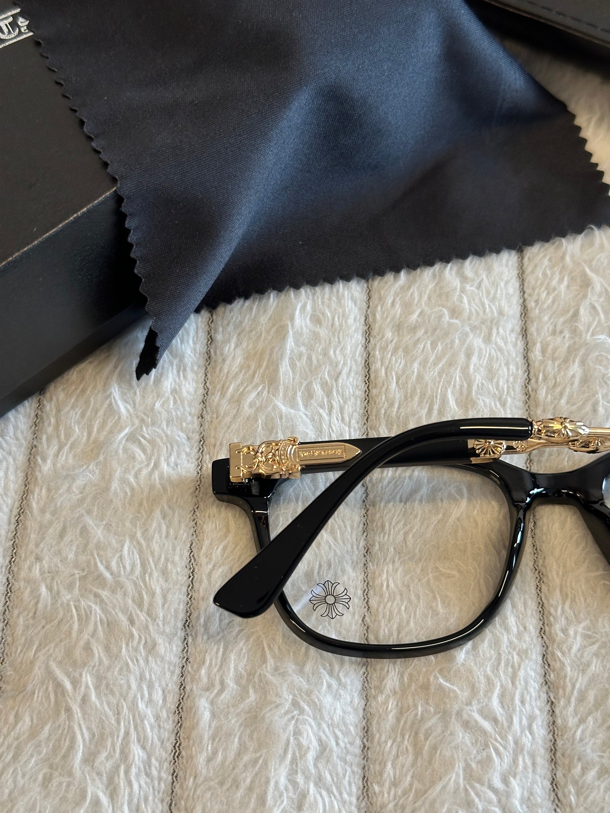 Round black frames featuring delicate gold detailing. A balance of warmth and boldness, made to shine in any setting.
