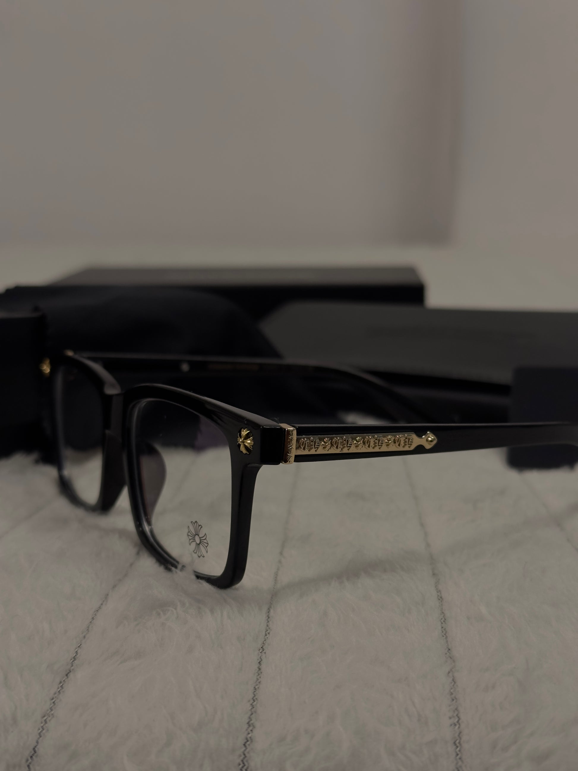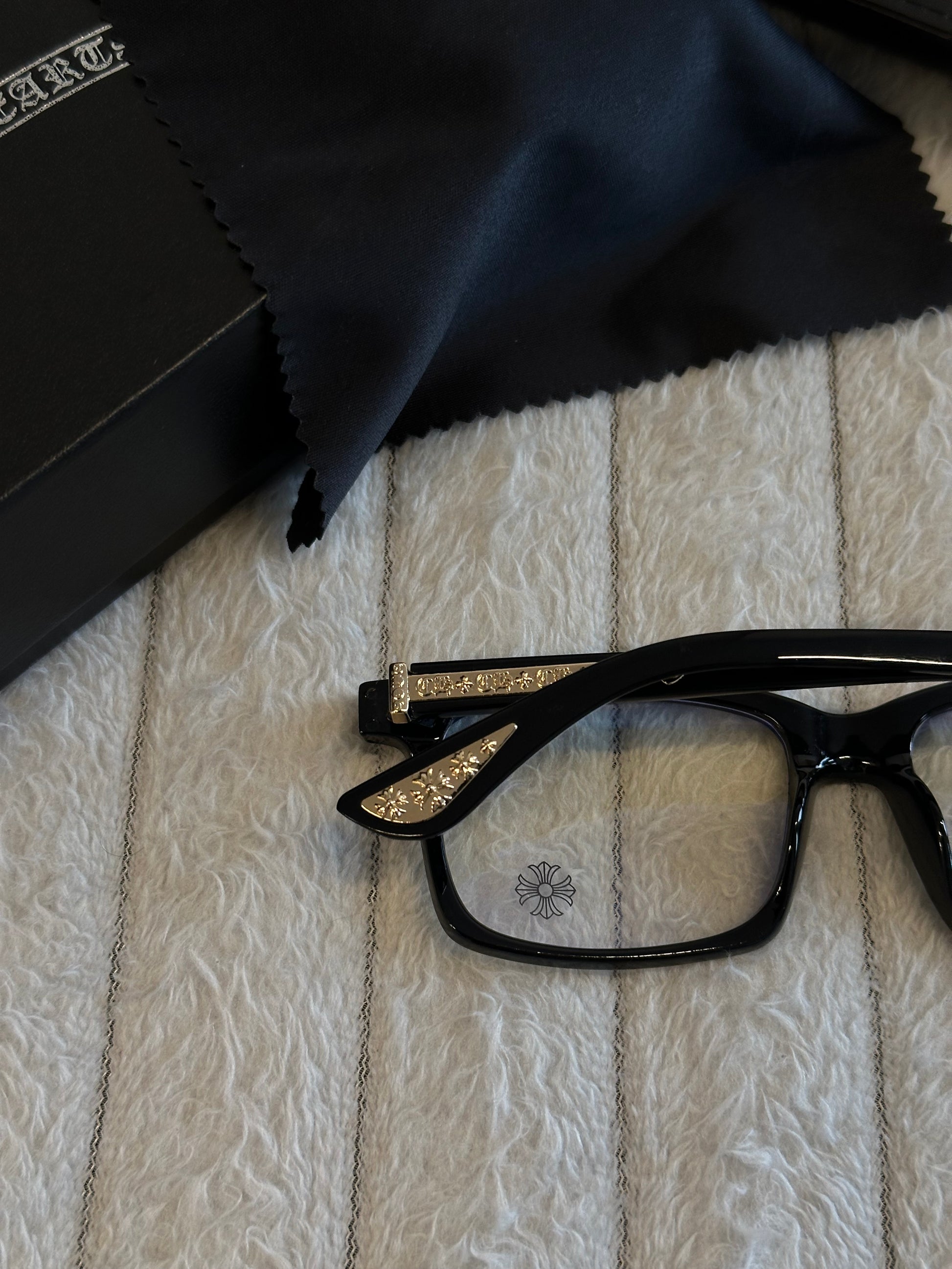 Square black frames enriched with detailed gold accents. A blend of luxury and edge, designed for those who carry light wherever they go.
